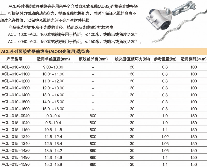 ACLϵÁÐÔ¤½ÊʽÐü´¹Ï߼У¨ADSS¹âÀÂÓã©