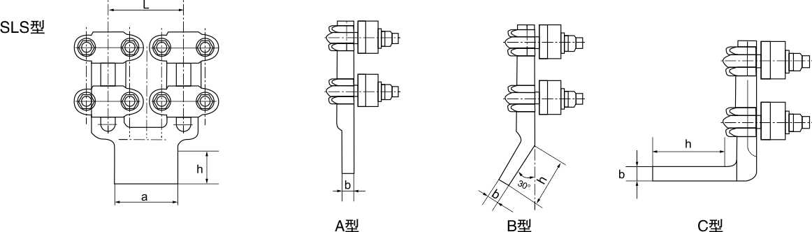 SLS ÂÝ˨ÐÍÍÂÁ¹ý¶ÉË«µ¼Ïß×°±¸Ïß¼Ð(AΪ0¡ãBΪ30¡ãCΪ90¡ã£©